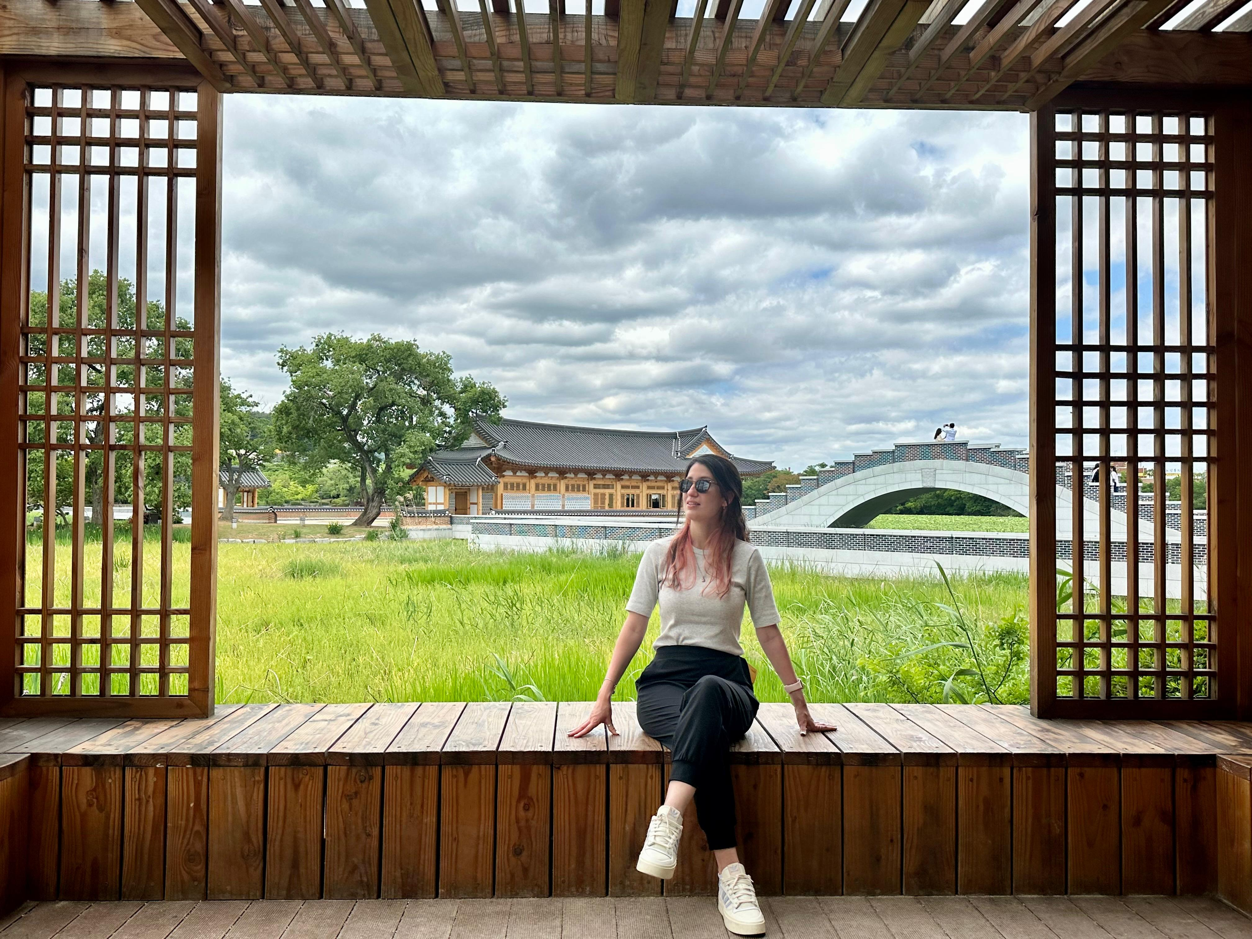 Jeonju é um popular cenário de gravação para vários dramas, incluindo o famoso “Twenty-Five Twenty-One“. Aproveitei para fazer uma agradável caminhada pela vila, explorando os locais onde as cenas foram filmadas. O passeio foi muito agradável, com o rio cortando a cidade e a simplicidade da vila tornando a experiência ainda mais especial.